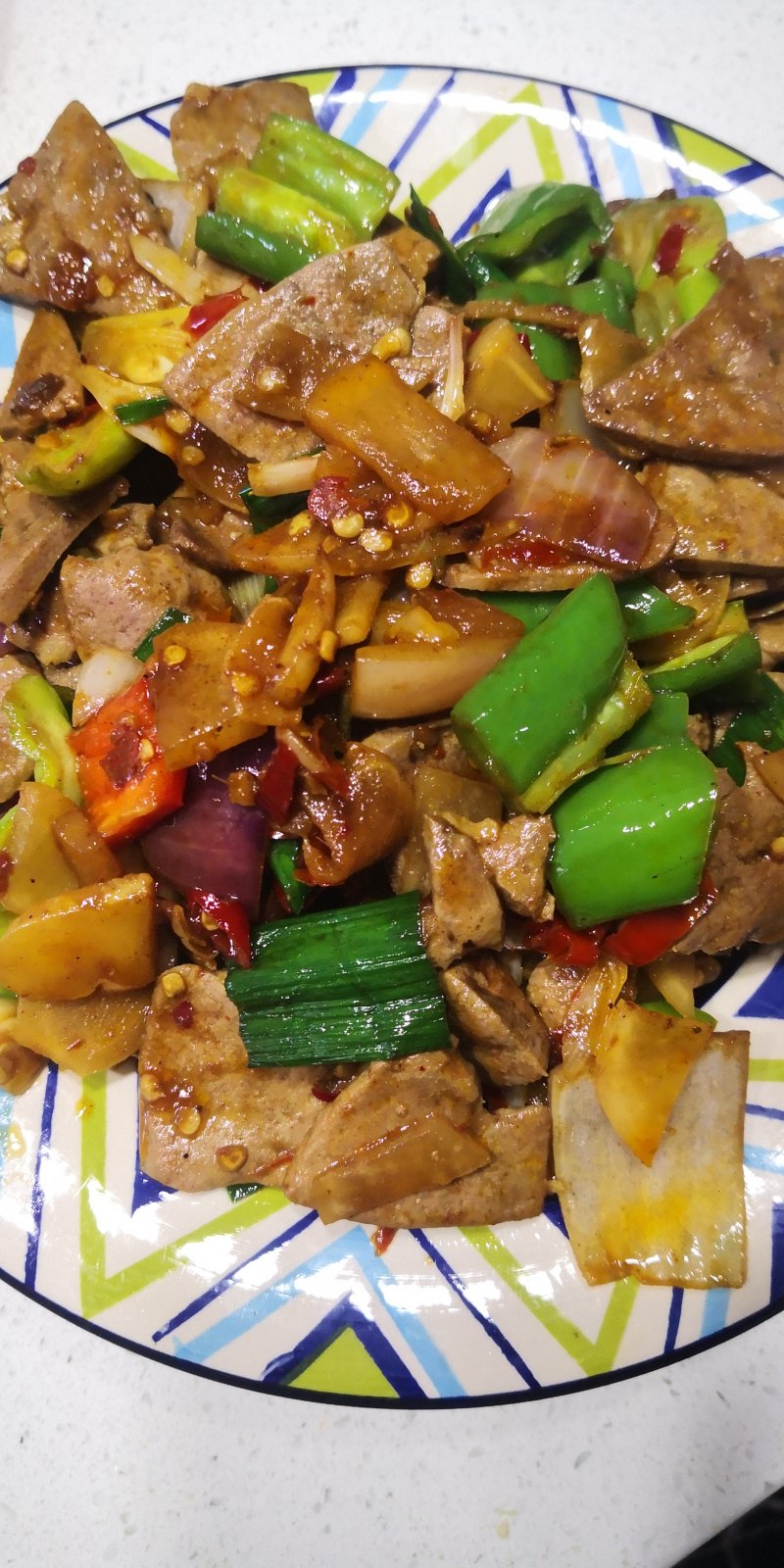 PS:1、猪肝用食用油拌匀,炒出来的确是要嫩得多。2、也有不少童鞋是先将猪肝切片,然后再泡水去血污。3、关于调料,你可以依据自己的喜好来,比如多放点花椒辣椒,又或者不放。4、猪肝要大火爆炒,青椒和洋葱不需要炒久。5、配菜可以随心所欲,比如胡萝卜,比如尖椒,比如豆干。
