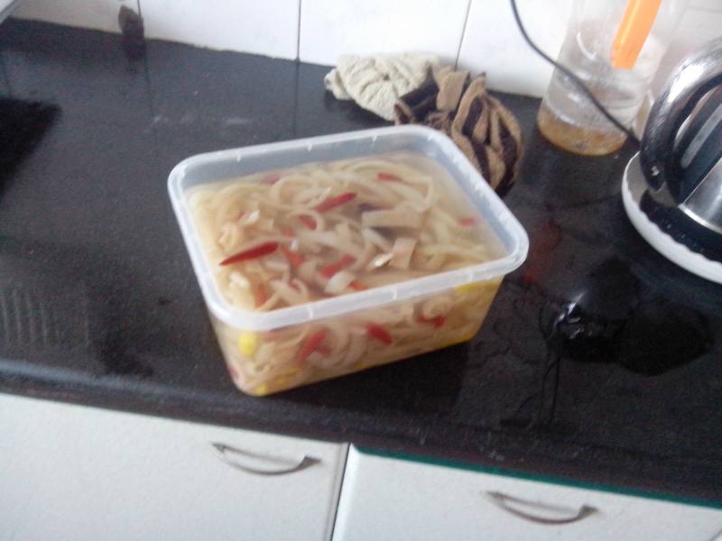 11:汤汁凉了之后,倒入容器,加盖子,放到冰箱保鲜柜,现在是冬天比较冷,我直接放到背阴窗外了,泡个一两天就可以吃了