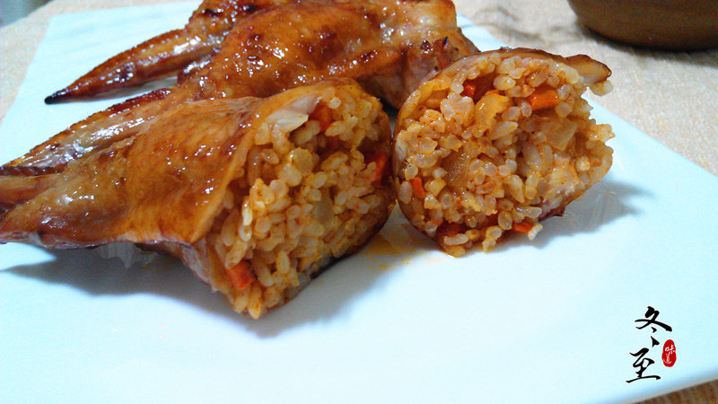 8:米饭塞入鸡翅。