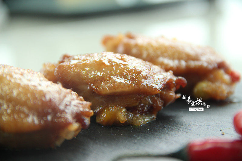 18:将刷好蜂蜜的鸡翅中再次放入烤箱中,温度仍为170度,时间10分钟继续烘烤即可食用。