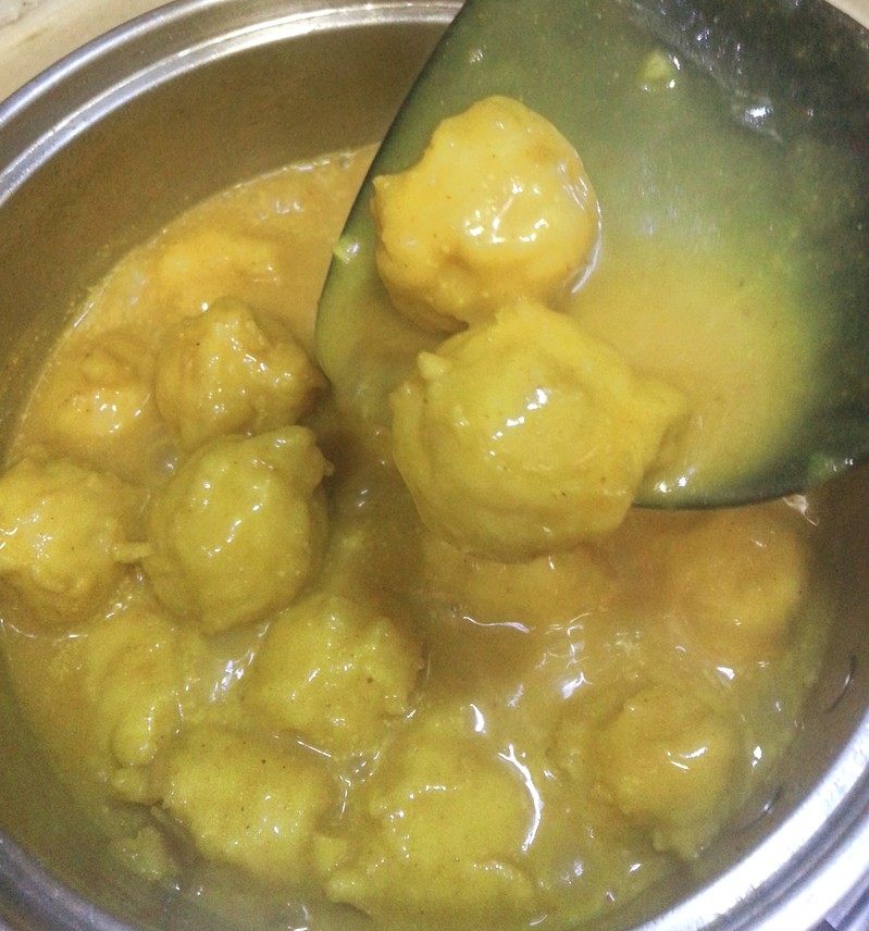 7:待咖喱块融化后放入鱼丸,大约15分钟,待汤汁变粘稠,关火即可
