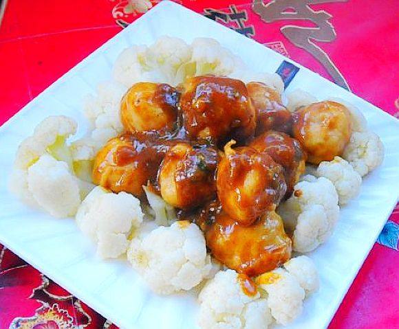 12:出锅把鱼丸盛入盘的中间,即可上桌。