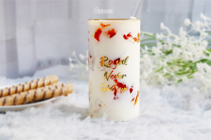 10:最后用勺子搅拌搅拌,一杯清香酸香可口的洛神花茶撞奶完成。
