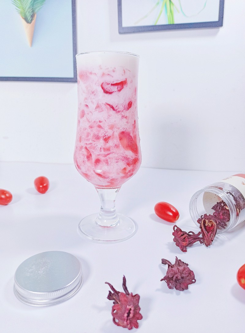 纯牛奶1盒;洛神花茶2朵;清水400g;白糖15g(冰糖);