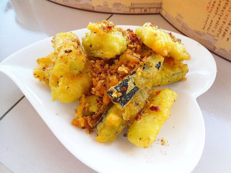 5:把茄条蘸匀脆皮糊