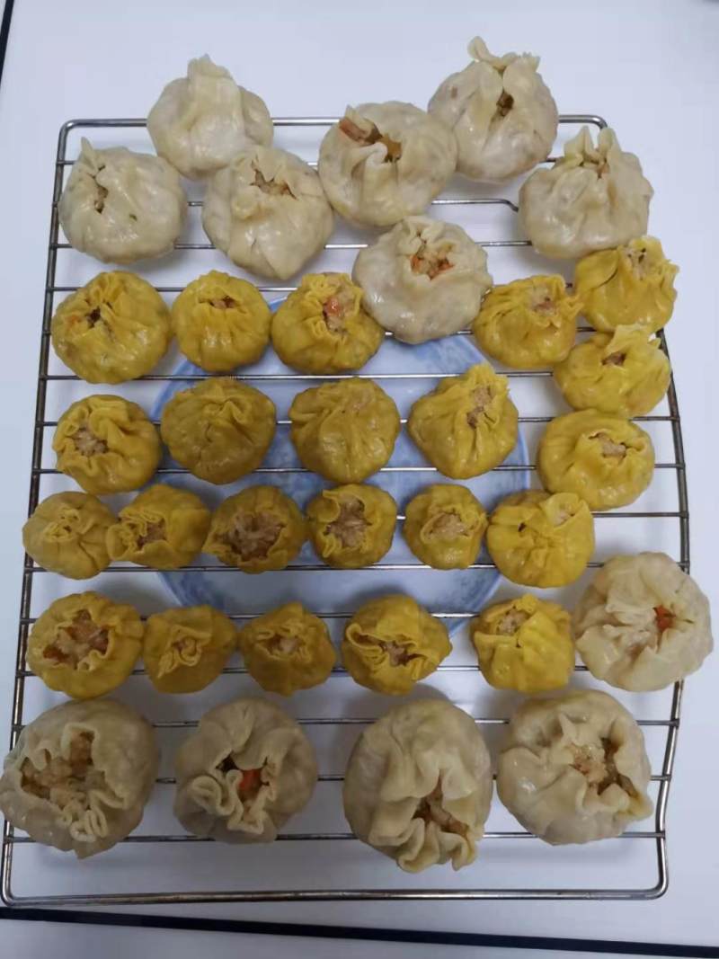 7:胡萝卜腊肠烧卖出锅啦,吃不完的放保鲜盒晾凉放入冰箱。