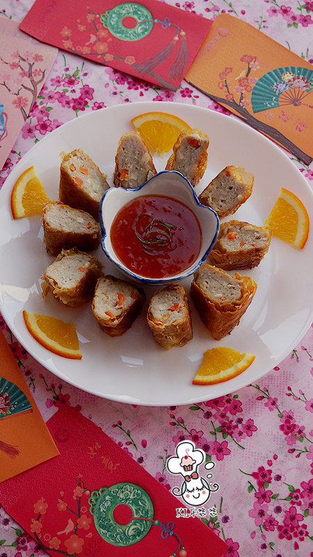 13:边上的腐竹衣裹入后继续往上卷即可。
