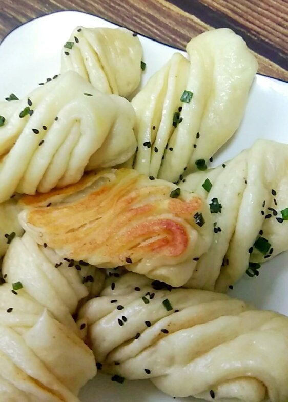 1、面团揉得偏软些,成品才更松软可口。2、先把底部煎得微黄,再加入没过食材1/3的开水,把水分焖干,花卷就熟了。煎制时要控制火候,不要温度太高,否则底部烧焦了,上面还没熟。