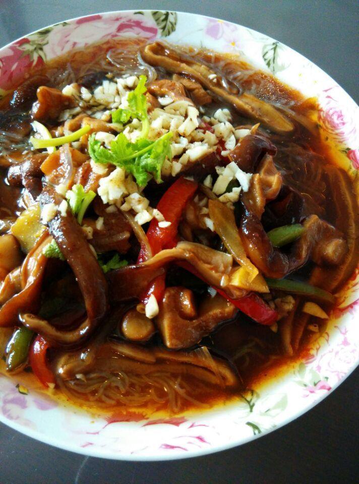 香菇250g;粉丝2小把;青椒少量;红椒少量;园葱少量;葱少量;蒜5-6瓣;姜少量;