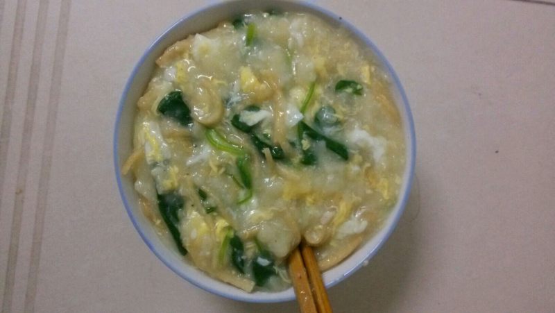 6:甩入鸡蛋液后的面疙瘩。