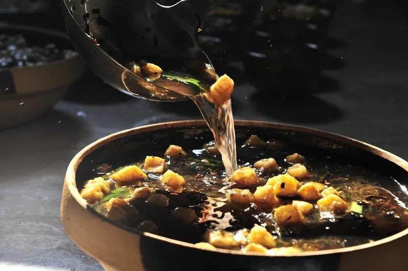 皖北油茶制作讲究地道风味,主要步骤包括:先以牛油或羊油热锅,加入面粉小火慢炒至微黄出香,制成油茶面底;随后分次倒入清水搅匀,放入花生、芝麻、黄豆等配料,以文火熬煮至浓稠;最后调入盐、五香粉等调味,撒上馓子或面筋,口感香浓顺滑,是当地传统的暖身早餐。