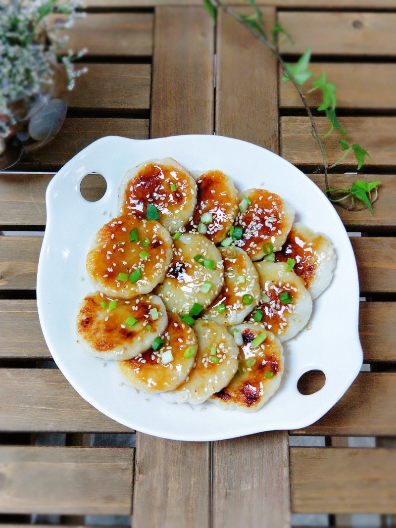 4:煎至两面金黄,装盘备用。