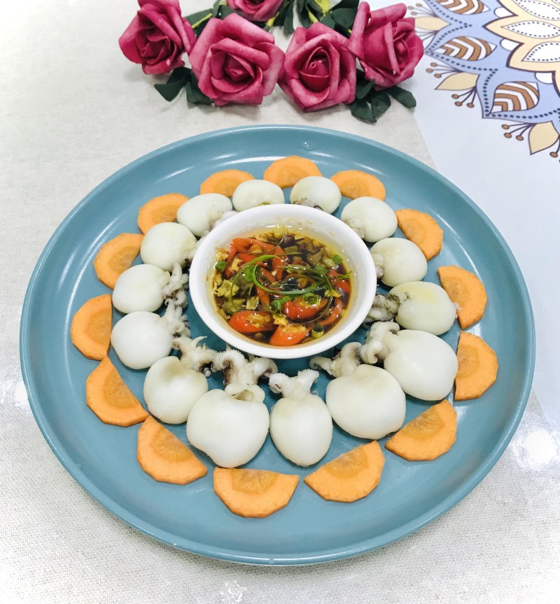 3:倒入墨鱼仔,水滚30秒后捞起来。