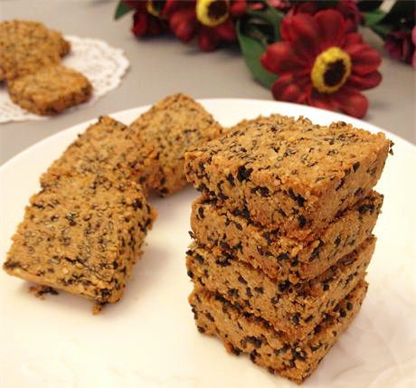 10:如果喜欢黑芝麻球,就趁还有点余温时,将黑芝麻酥糖切成小块,然后团成丸子;如果喜欢方块状的酥糖,就等它完全冷却定型后再切开即可;酥糖晾凉后,就可以吃啦~!很香的黑芝麻酥糖哟,喜欢的筒子试试吧。