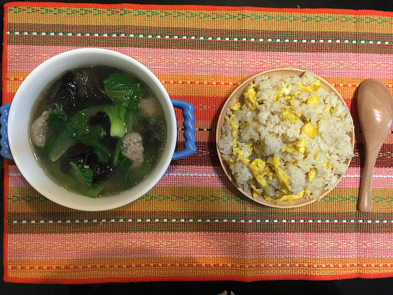 7:我老公“事儿多”,要求这个那个的……其实更简单的做法。肉馅放黄酒、食盐、蛋清。青菜、木耳洗净切段。开水青菜、木耳下锅。油菜香味出来下丸子。丸子煮好,碗内放佐料盛出来就OK了。