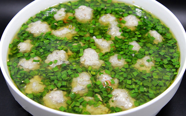 韭菜猪肉丸子油腐汤