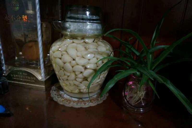 8:把剥好的蒜放入腌制的坛子里