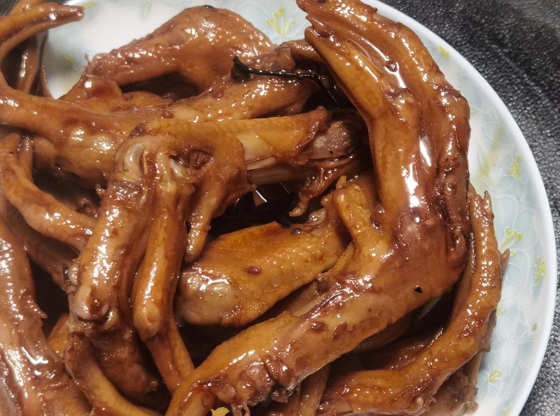 4:捞出鸭掌,汤汁可以不用收干。开吃!