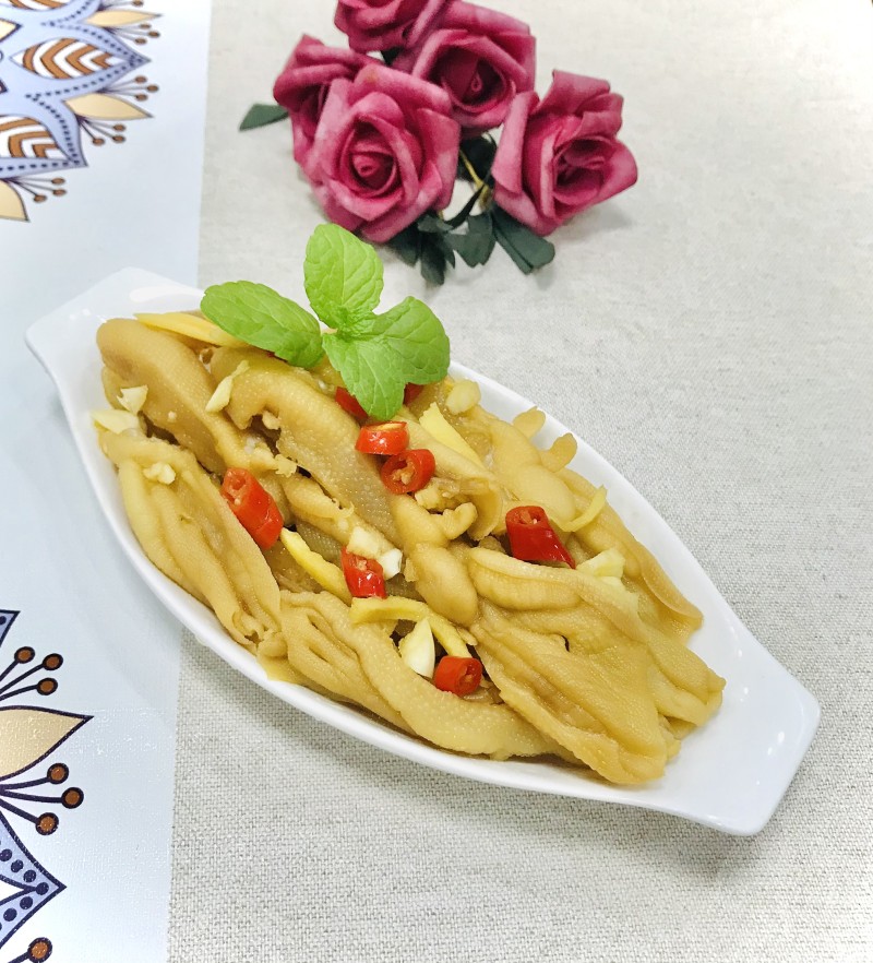 4:煮了45分钟的鸭掌终于好了,最后撒点味精提提鲜盛入盘中即可。