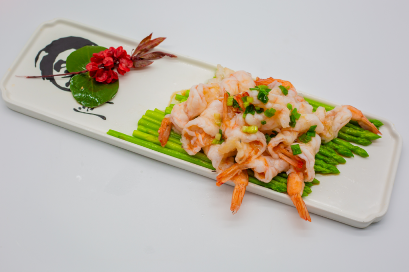 制作:1、将虾去皮留尾,从背部开边,沾上生粉锤成薄片。2、小芦笋去根部,焯水后铺入盘底,虾片入锅内焯熟,摆入盘中。3、锅内入底油,放香葱微炸,后加入蒸鱼汁烧沸,淋入虾中即可。糖醋里脊