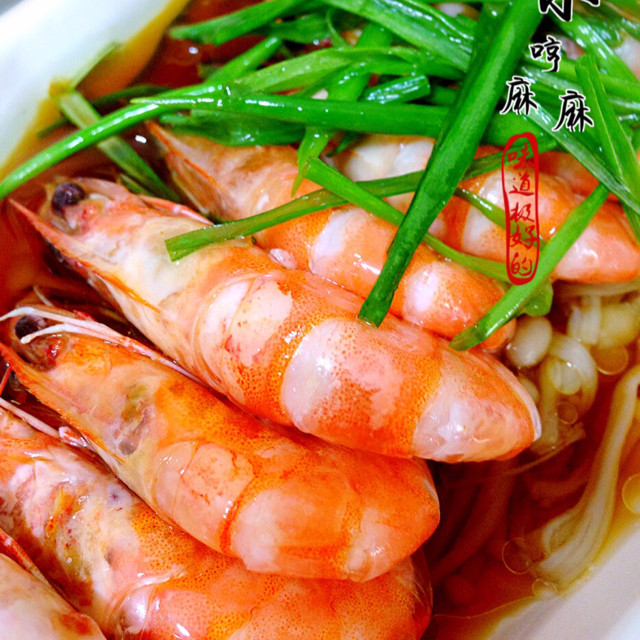 1:大虾洗干净(我这次买的全部是活虾,由于虾是活的,经过卖家比较长时间的养殖,大虾内部的脏东西已经代谢干净了,而且虾不是特别大,所以就不需要挑虾线和开背了。如果您买的是比较大的速冻虾,就需要挑虾线和开背哦),加姜片,上蒸锅蒸大约15分钟