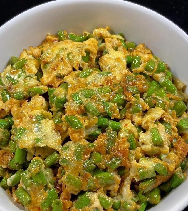 1、豆角清洗干净切成丁,焯水煮至断生,捞起来沥干水分。鸡蛋打入碗中,搅散备用。