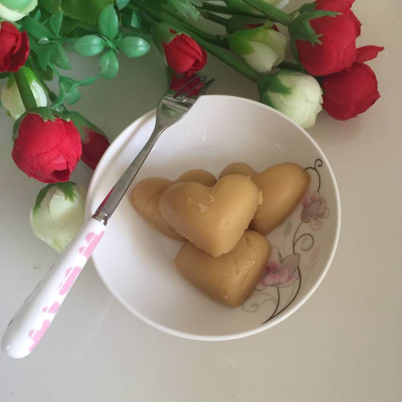 3:按蹄筋豆类键盘,好了放入白糖,用筷子搅拌,然后舀到模具定型,凉凉脱模,豌豆糕就做好!