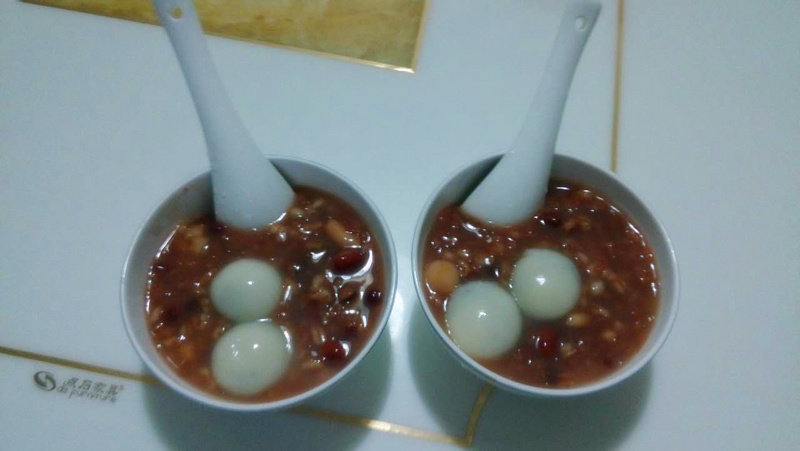 5:将八宝粥放入碗中,嵌入汤圆数个。放在冰箱中冷藏一段时间,待凉了之后即可食用。如果怕凉的话,可以趁热吃,也非常可口。个人认为粥尽量稀一些,口感会更好。