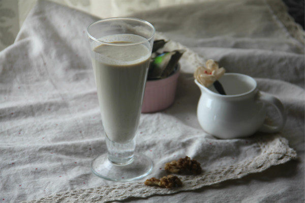 3:牛奶与烤香的核桃仁搅打均匀,