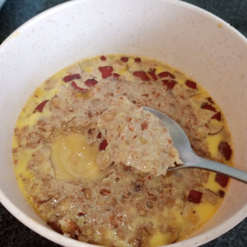 盐不要过量属甜口早餐吃的话比较清淡。一个鸡蛋也够了每天补充适量蛋白质这里我用的是两个鸡蛋和两个核桃。