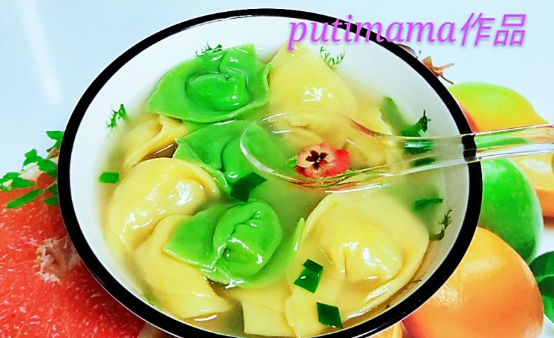 2:自制的菠菜汁馄饨。