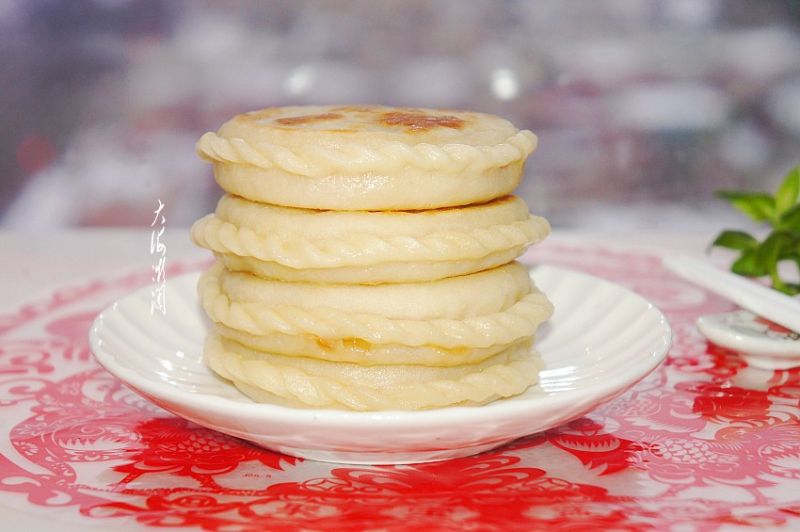 6:平底锅薄薄地刷油,放入包好的合子,小火烙,一面烙好,翻面烙另一面,待另一面烙好,倒入少许水,盖上锅盖焖至水干,这样皮馅都能熟透。