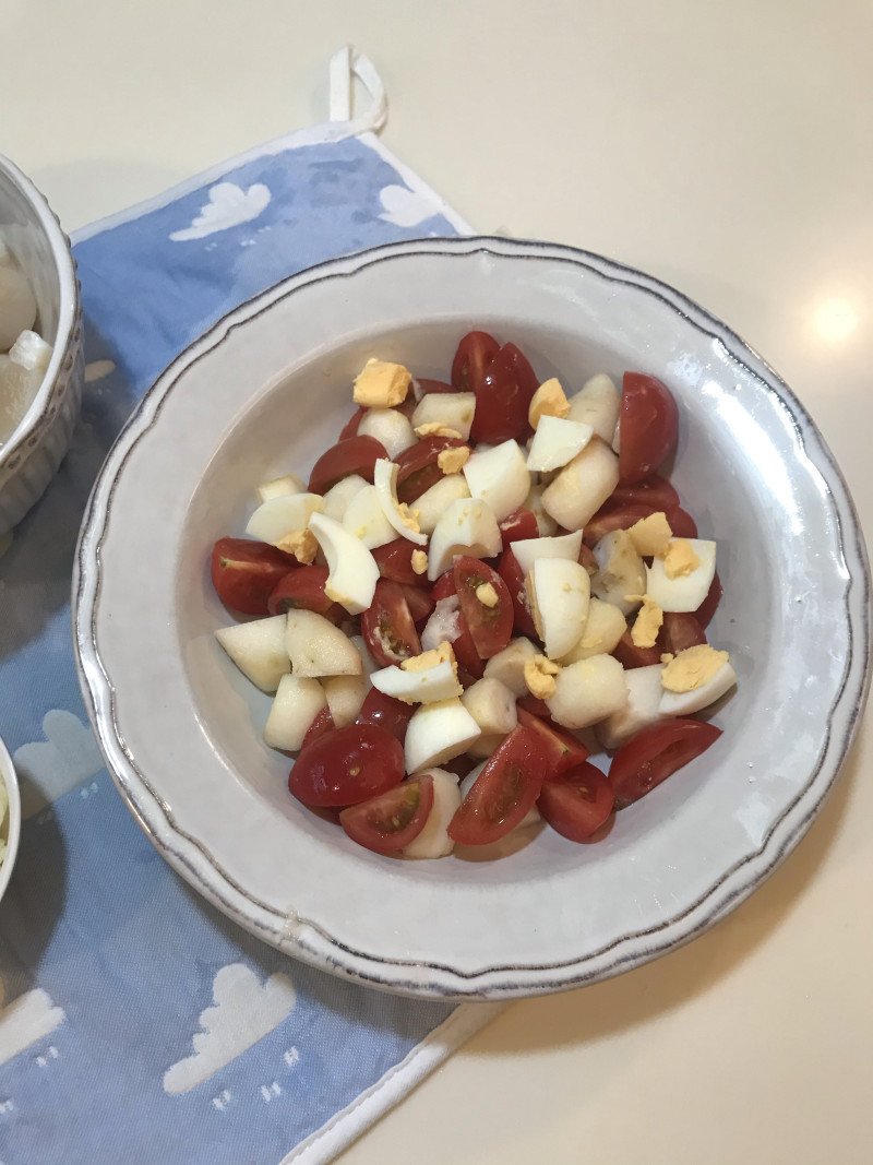 荸荠适量;小番茄适量;白煮蛋1个;
