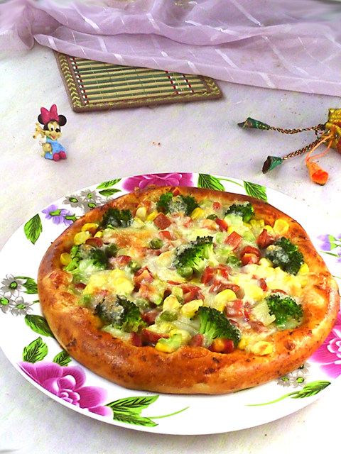 综合蔬菜丁200克;火腿肠1根;马苏里拉奶酪100克;西兰花数朵;
