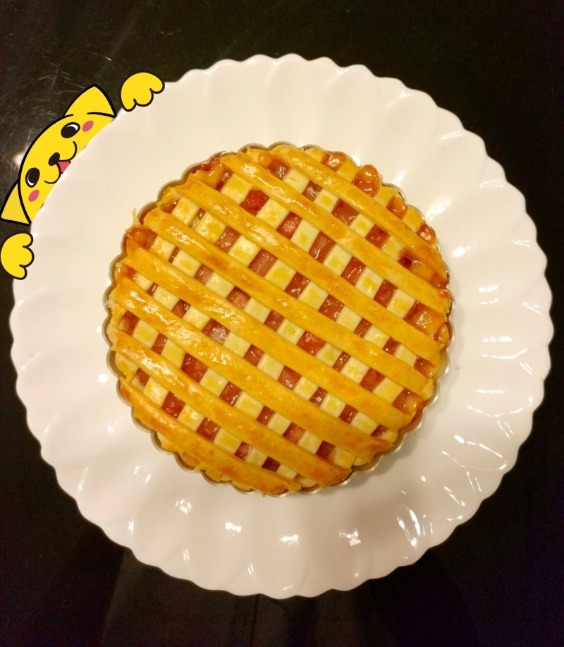 15:将之前熬好的蜜桃馅料倒入派皮中;