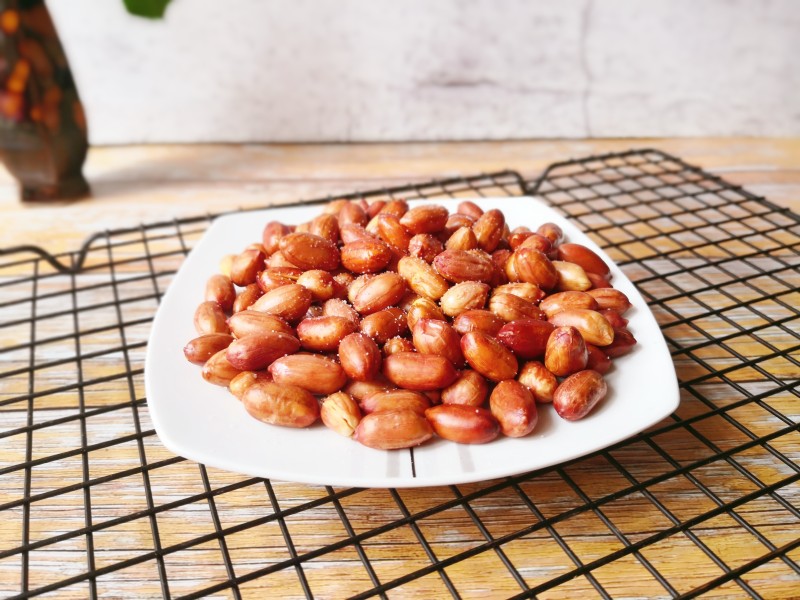 5:时间到趁热在花生米上撒少许盐晃匀即可。
