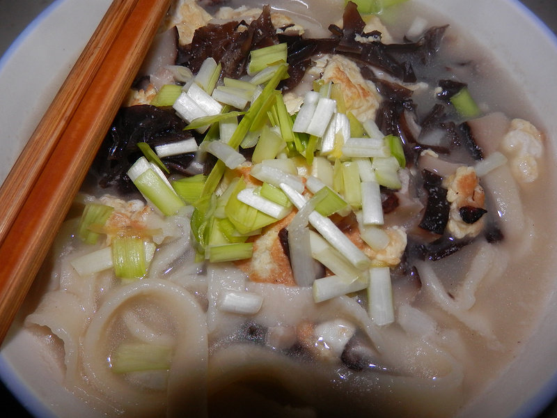 9:锅开后,加入黑木耳和香菇,锅再开就可以下面了。