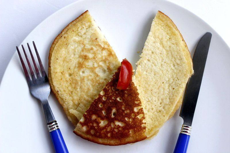 7:平底锅烧热后,倒入一汤勺面糊。小火煎至面糊表面有气泡后翻面再煎1分钟即可。