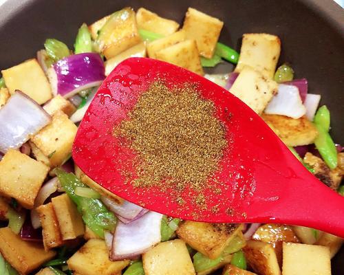 孜然豆腐素鸡完成了!我们可以品尝到浓郁的孜然香味和丰富的口感,满足味蕾的同时也得到了全面的营养。