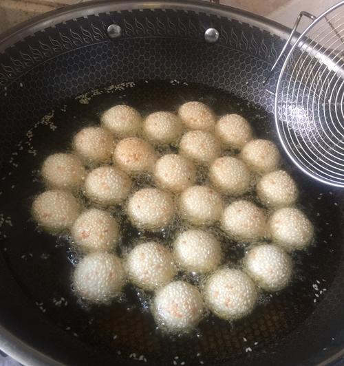 3.煎芝麻球时,要用中小火,以免煎糊。