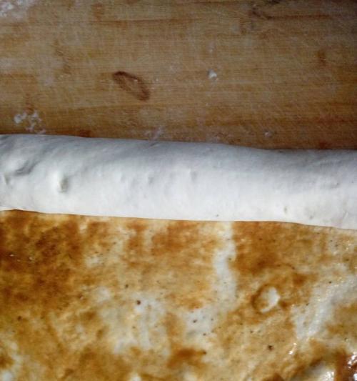 将适量的芝麻酱均匀地涂在面团上,这样可以增加大饼的口感和香味。