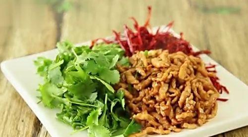 将选好的猪肉切成细丝,约2-3毫米左右。建议使用刀切,这样可以保持丝的一致性,不易破碎。
