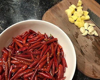 先将花生油倒入锅中烧热,将切好的辣椒块倒入热油中炸至金黄色,这样可以让辣椒更加脆香。