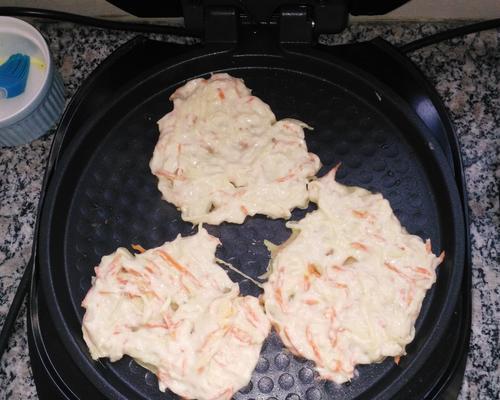 将平底锅置于中火上加热,倒入约1/4杯面糊。在锅中让面糊自然散开,并保持形状成圆形底部。