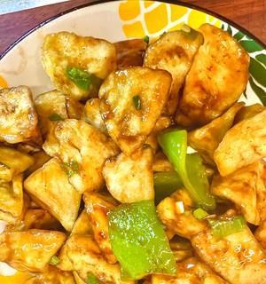5.加入茄子:放入经过水浸的茄子段,快速翻炒,使其表面焦黄。