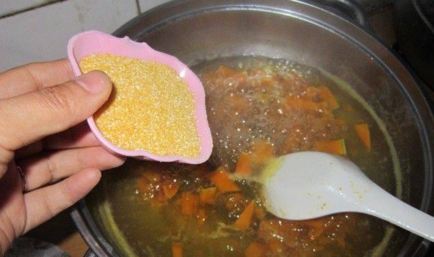 转小火,让粥慢慢熬煮。时间大约在半小时左右。