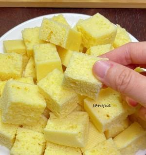 将玉米面和水混合搅拌均匀,倒入锅中煮至浓稠状后搅拌均匀,再将其倒入模具中冷却凝固,最后切成小块备用。