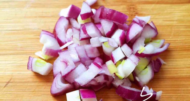 将去皮去骨的鸡腿肉切成小丁,加入适量的盐、白胡椒粉搅拌均匀,放入锅中煮熟。