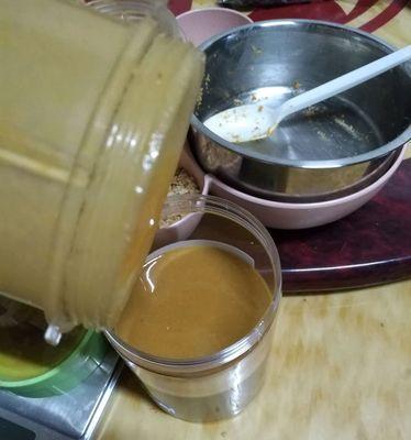 将打好的花生酱装入干净的玻璃瓶中,密封保存。这样可以保持花生酱的新鲜度和口感。