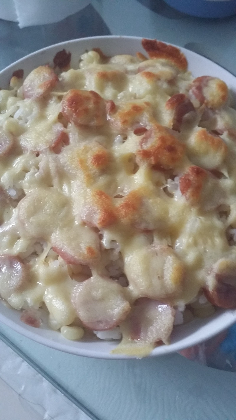 6:烤箱就大概200度10分钟的样子,芝士化了就行,米饭也热透了